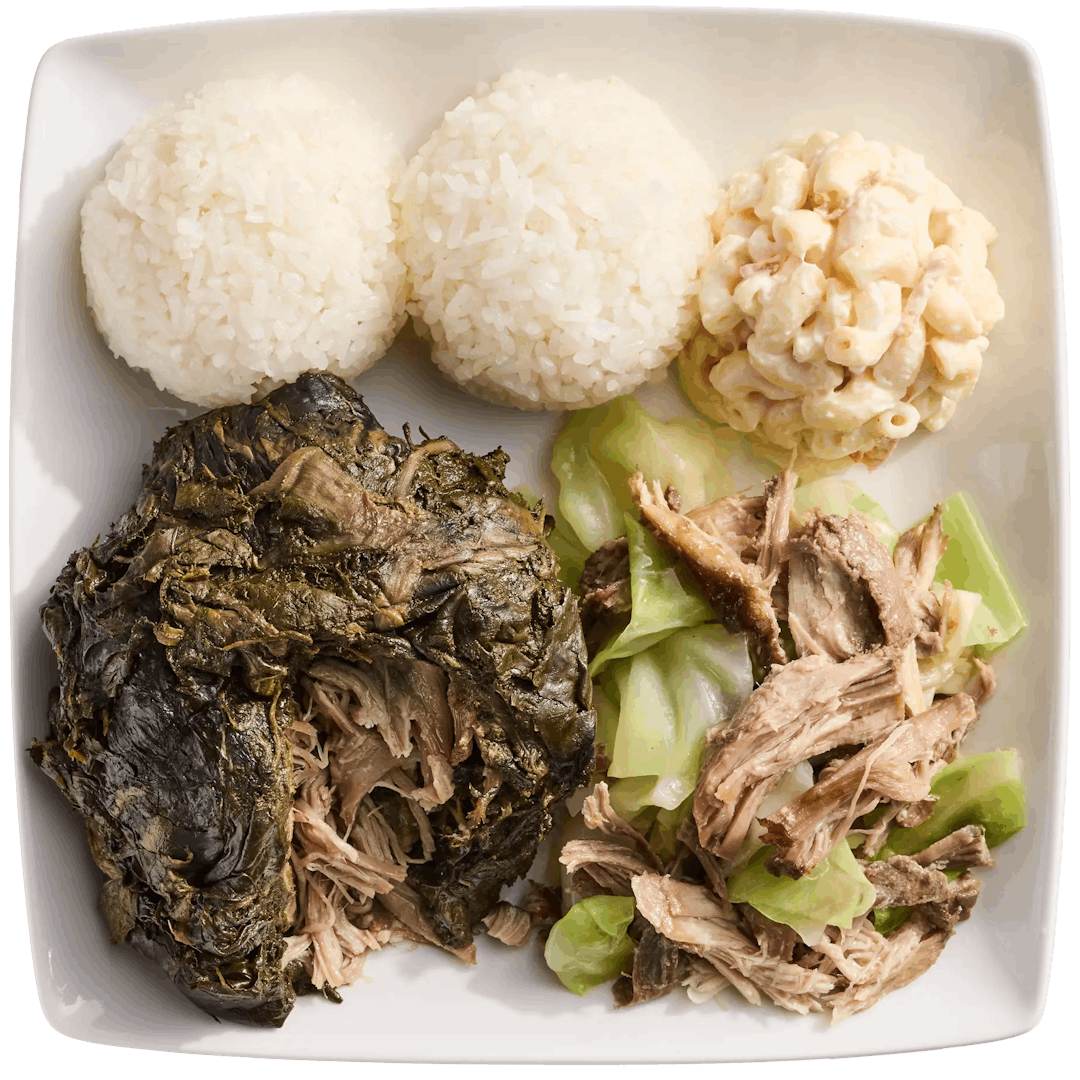 Slow-steamed pork shoulder wrapped in taro and ti leaves paired with our signature Kalua Pork & Cabbage.
