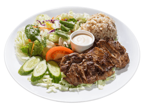 Our famous barbecue chicken served with a scoop of brown rice and tossed green salad.